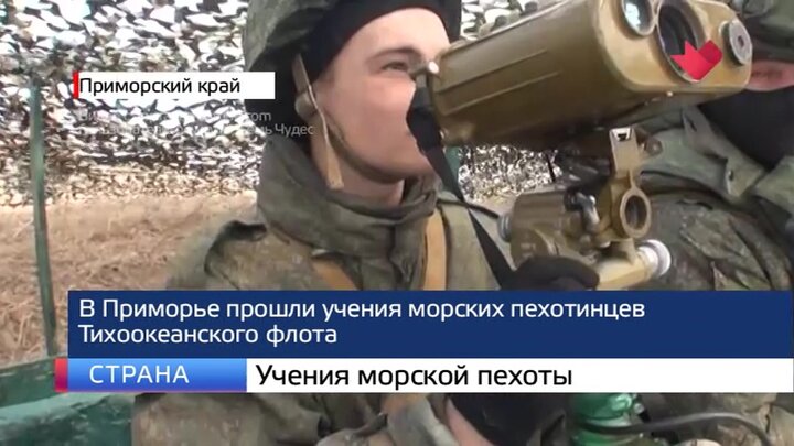 В Приморье прошли масштабные учения морских пехотинцев Тихоокеанского флота с воздушным десантом и боевыми стрельбами. В маневрах задействовали порядка тысячи бойцов и более 200 единиц военной техники. Согласно легенде учений, диверсионно-разведывательные группы условного противника высадились на берег и открыли огонь. Чтобы подавить сопротивление, морские пехотинцы десантировались на местность с корабля "Николай Вилков" и самолетов Ан-26. Учения проходили на полигоне Клерк в условиях, максимально приближенных к боевым.