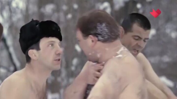 В фильме "Джентльмены удачи" актеры совсем не планировали растирать друг друга снегом на подмосковной даче. Вышло это случайно: режиссер Александр Серый хотел всего лишь снять зарядку на свежем воздухе, а получилась эмоциональная сцена. Более того, никто из актеров не хотел раздеваться в холодную погоду. Леонов, Вицин и Крамаров договорились, что объявят забастовку, если их заставят снять теплую одежду. Но случилось непредвиденное. Радика Муратова никто не посвятил в планы. Актер опоздал на съемки и не успел узнать о коварных планах товарищей. Прозвучала команда режиссера "Мотор!", и он единственный выскочил на снег без одежды. Подробнее об этом − в программе "Кинофакты".