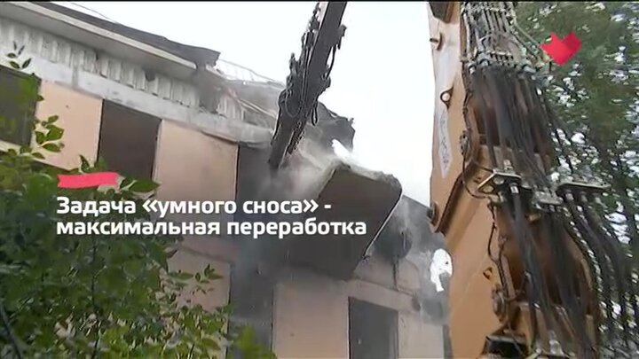 В Бабушкинском районе демонтировали пятиэтажку по технологии "умного сноса". Сначала внутри здания разобрали отдельные элементы, затем с помощью экскаватора снесли железобетонный остов здания.