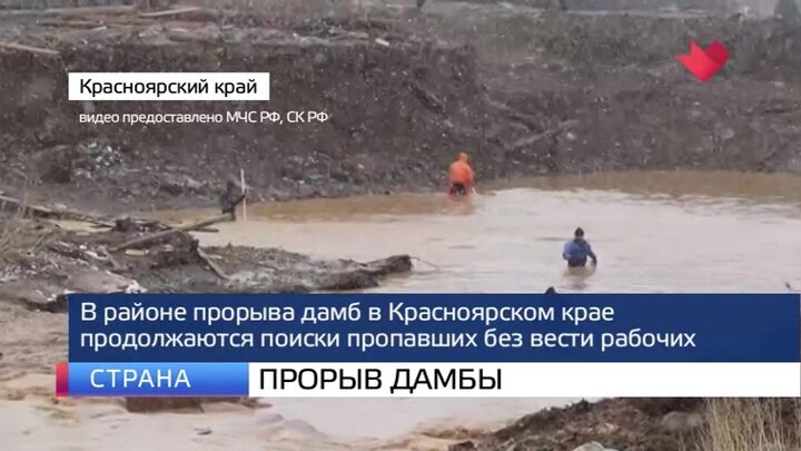 В районе прорыва дамб в Красноярском крае продолжаются поиски пропавших без вести рабочих. Спасатели планируют осушить заводи двух рек. Только после этого можно будет детально проверить территорию. Сотрудники МЧС уже обследовали девять квадратных километров на месте трагедии. Специалисты разбирают завалы строительного мусора. К операции привлечены более 200 человек, они используют около 50 единиц спецтехники, в том числе плавсредства.