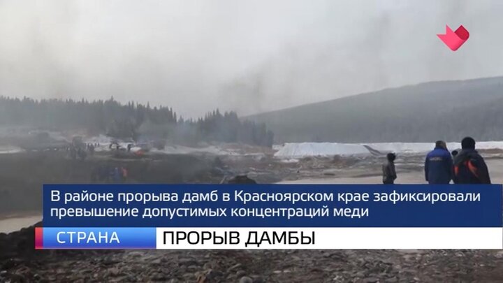 В районе прорыва дамб в Красноярском крае зафиксировали превышение предельно допустимых концентраций меди более чем в 200 раз, в воде также обнаружили много свинца и цинка. Об этом сообщили специалисты Росгидромета, которые взяли пробы в реке Сисим, входящей в бассейн Енисея. Тем временем, спасатели продолжают искать пропавших без вести рабочих.