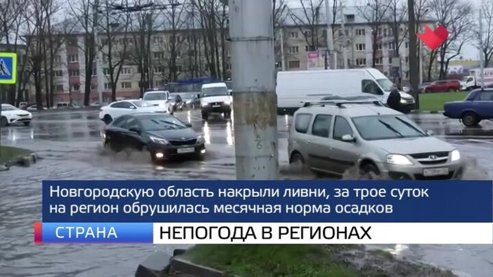 Российские регионы испытывает непогода. Новгородскую область накрыли рекордные ливни. За трое суток на регион обрушилась месячная норма осадков. В наиболее пострадавших районах введен режим чрезвычайной ситуации. Некоторые дороги превратились в реки, от внешнего мира отрезаны семь поселков. Для жителей организована доставка воды и продуктов.