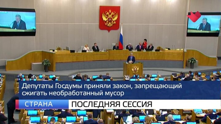 530 законов приняла Госдума в 2019 году. В нижней палате проходит финальное пленарное заседание осенней сессии. Депутаты подводят итоги. За четыре месяца работы парламентарии утвердили бюджет страны на три года, отменили банковский роуминг, освободили от НДФЛ компенсации обманутым дольщикам, ввели электронные трудовые книжки, а буквально на прошлой неделе вернули российским аэропортам право оборудовать курилки. Депутаты уже рассмотрели несколько проектов и на заключительной сессии. Был принят правительственный закон о плате за негативное воздействие на окружающую среду. В документе прописан запрет на сжигание необработанного мусора, средства от экологического сбора будут направлять на утилизацию отходов. Также парламентарии решили, что в стране теперь будет действовать административная ответственность за незаконную продажу билетов в театры, музеи, цирки и на концерты.