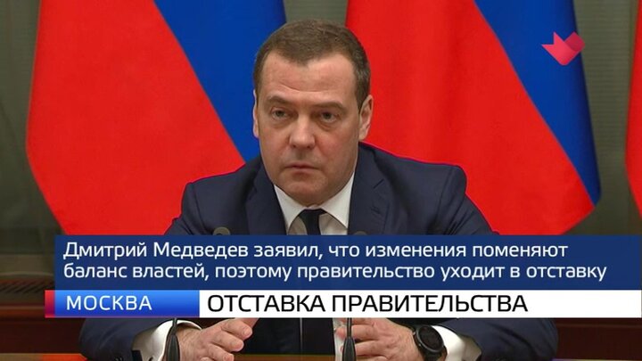 Правительство России в полном составе ушло в отставку. Об этом Дмитрий Медведев сообщил во время встречи кабинета министров с Владимиром Путиным. Совещание началось сразу после послания президента, в котором глава государства предложил внести некоторые поправки в Конституцию. В частности, изменить роль парламента. Госдума должна получить право утверждать председателя правительства, чью кандидатуру предлагает глава государства.