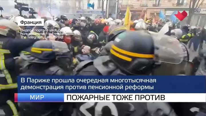 В Париже прошла очередная многотысячная демонстрация против пенсионной реформы. Законопроект уже представили правительству и в ближайшее время перенаправят на рассмотрение парламента. Противники нововведений предупреждают, что борьбу прекращать не собираются. К акциям протеста присоединились пожарные. Демонстрация, которая изначально носила мирный характер, переросла в столкновения со стражами порядка.