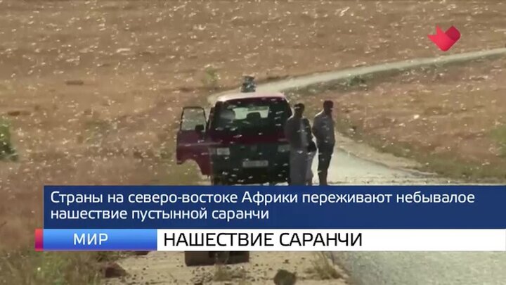 Северо-восток Африки накрыло облако из саранчи. С этой проблемой столкнулись Эфиопия, Сомали, Танзания, Уганда и Судан. Фермеры Кении, для которых это самое страшное нашествие насекомых за 70 лет, уже говорят о масштабных потерях - их поля опустели. Эксперты предупреждают, что без кампании по сдерживанию крылатых вредителей в ближайшие три месяца популяция саранчи может увеличиться в 500 раз.