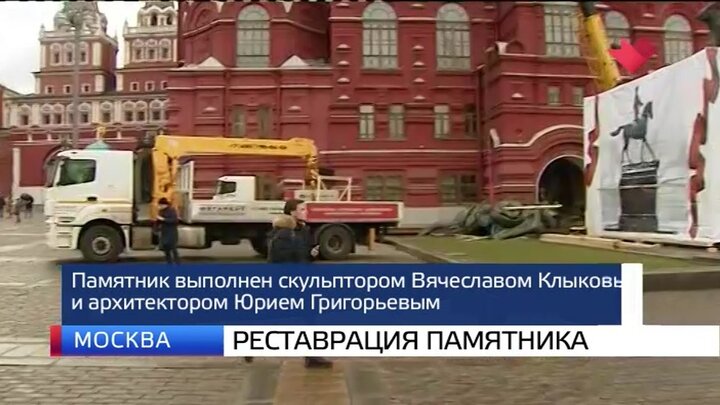 Памятник маршалу Георгию Жукову на Манежной площади демонтировали для реставрации. Скульптура была установлена в мае 1995 года перед Историческим музеем в честь 50-летия Победы в Великой Отечественной войне. Памятник выполнен скульптором Вячеславом Клыковым и архитектором Юрием Григорьевым. 20 марта его заменили на другой. Теперь правая рука у Георгия Жукова не опущена вниз, а отдает честь. А конь, который раньше стоял на всех четырех конечностях, сейчас держит левую переднюю приподнятой. В Мосгорнаследии сообщили, что это временная замена. Оригинальную скульптуру вернут на место после окончания восстановительных работ. В ведомстве отметили, что новую копию все же демонтируют. Во время установки выяснилось, что постамент не выдержит ее. Памятник маршалу Георгию Жукову планируется установить на прежнее место к 9 мая.