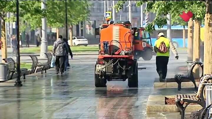 Полив проводят каждые три часа. Основная мойка проходит в ночное время. Одновременно в городе продолжаются работы по дезинфекции. Особое внимание уделяется остановкам общественного транспорта и площадкам перед входам на станции метрополитена.