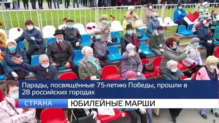 Парады, посвященные 75-летию Победы в Великой Отечественной войне, сегодня проходили по всей стране. Праздные марши были в 28 городах. Первый в этом году военный парад провел Южно-Сахалинск. В нем приняло участие около тысячи человек, задействовали 32 единицы боевой техники. Затем шествия без зрителей состоялись на улицах Петропавловска-Камчатского, Владивостока, Хабаровска, Читы, Улана- Удэ, Новосибирска. Самым маленьким городом, где сегодня проехала колонна техники, стал Белогорск в Амурской области. А на Кубани в этот раз парад прошел только в Новороссийске. Что касается Крыма, то там шествия провели в городах-героях Севастополе и Керчи, а также в столице республики Симферополе. Поздравления с юбилеем парада Победы сегодня пришли с МКС. Российские космонавты Анатолий Иванишин и Иван Вагнер поблагодарили ветеранов и участников исторического марша, состоявшегося 75 лет назад на Красной площади.