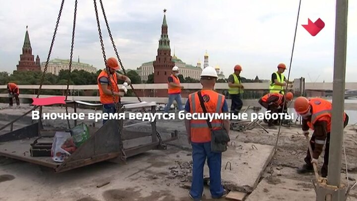 Ремонт Большого Каменного моста ведется в круглосуточном режиме. При этом в ночное время проводятся только бесшумные работы. Такой режим позволит завершить реконструкцию раньше срока. Изначально сдача объекта была запланирована на конец 2021 года.