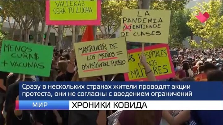В Мадриде митингующие возмущены ужесточением карантина для бедных районов, а парижане приходят на акции протеста против сокращения времени работы увеселительных заведений – ресторанов и дискотек.