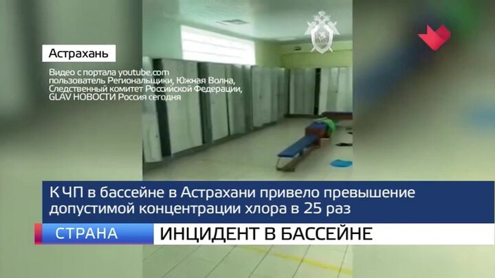 В бассейне в Астрахани, где произошло ЧП, в 25 раз была превышена допустимая концентрация хлора. К такому выводу пришли эксперты, которые проанализировали состав воды.