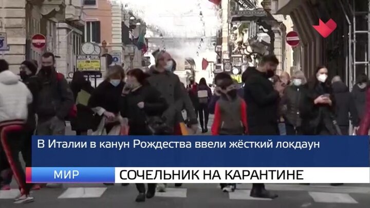 Италия в канун Рождества ушла на жесткий локдаун. По всей стране закрыты непродуктовые магазины. Рестораны и бары могут обслуживать клиентов только на вынос. Выйти из дома разрешено лишь в случае крайней необходимости. Ограничения коснутся даже праздничных застолий. Приглашать в гости рекомендуется не более двух человек, которых могут сопровождать дети в возрасте до 14 лет. А вот собираться на улицах, в том числе в новогоднюю ночь, строго запрещено. Карантинные меры внесли коррективы даже в традиционную рождественскую службу в соборе Святого Петра. Она пройдет при минимальном количестве участников и начнется на несколько часов раньше обычного.