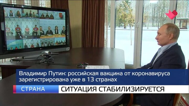 Российская вакцина от коронавируса зарегистрирована уже в 13 странах. Об этом заявил Владимир Путин. Президент пообщался с учащимся вузов по случаю Дня студенчества. Во время онлайн-встречи глава государства также отметил, что в целом ситуация с коронавирусом в России сейчас стабилизируется.