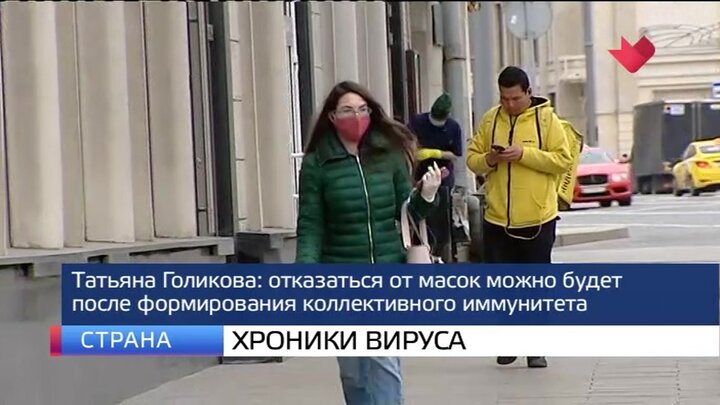Отказаться от масок можно будет после формирования коллективного иммунитета к коронавирусу. Об этом заявила вице-премьер Татьяна Голикова. Она отметила, что сейчас в России ситуация с распространением болезни стабилизировалась, цифры идут на спад. Однако, чтобы быстрее получить коллективный иммунитет, важно делать прививки.