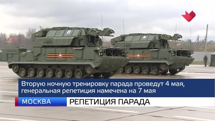 Вторую ночную тренировку парада в центре города проведут 4 мая. Генеральная репетиция намечена на 7 мая.