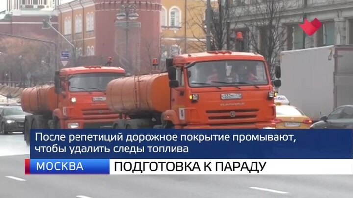 Еще специалисты дополнительно проверили техническое состояние инженерных сооружений на маршруте движения военной техники, а на некоторых участках защитили гранитное мощение прочным резиновым покрытием. Также дежурят аварийные бригады и рабочие, которые промывают дорожное покрытие, чтобы удалить следы топлива.