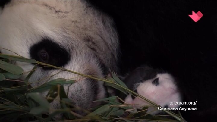 Фотографии и видео панды Диндин и ее детеныша продолжают радовать москвичей. Девочка весит уже почти три килограмма.