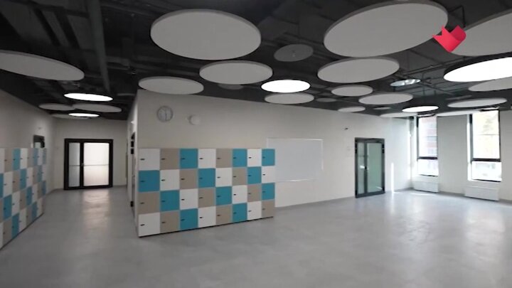 В школе оборудовали специализированные и универсальные кабинеты, спортивный зал, медиатеку, обеденный зал, медицинский блок и пространство для мероприятий. На улице обустроили спортивный комплекс с беговой дорожкой, зоной воркаута, площадками для ГТО и столами для настольного тенниса.