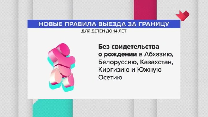 Для выезда детей младше 14 лет в некоторые ближайшие к России страны теперь будет необходим загранпаспорт. Новые правила коснутся поездок в Белоруссию, Абхазию, Казахстан, Киргизию и Южную Осетию. Ранее для таких путешествий достаточно было свидетельства о рождении.