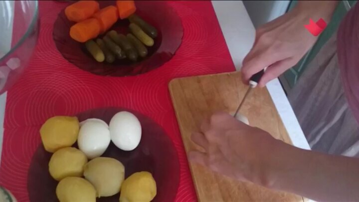 Москвичка рассказала, как она готовит знаменитый салат оливье.